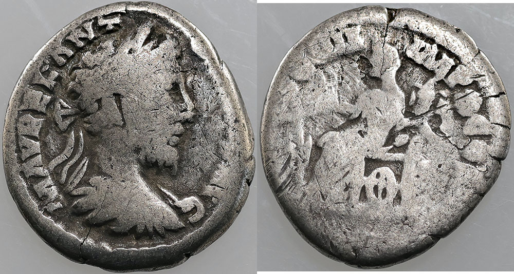| Description: Ancient Rome Imperial Marcus Aurelius Emperor silver Denarius N/D (161-180 AD) (18mm). Obv: laureate draped and cuirassed bust right, Rev: Fortuna seated left, holding rudder and cornucopia. Toned, scratches. VG |