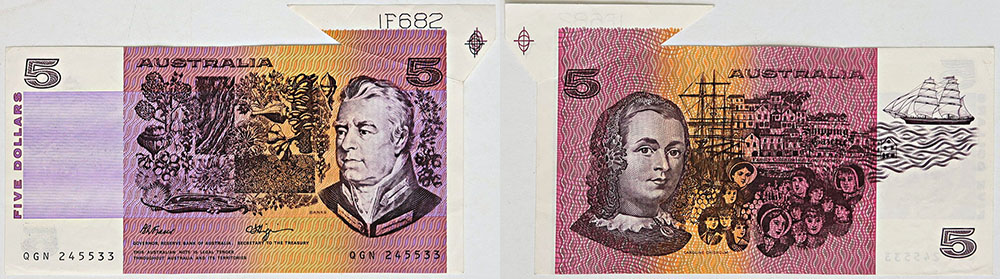 | Lot: 726 Category: Misprinted Australian Banknotes > Five Dollar |
