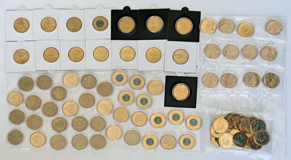 | Description: Small collection of 1 Dollar coins, 1984-2023, many in Unc and includes some commemorative, alphabet and Donation issues. Includes list. (84 coins total). VF-UNC |