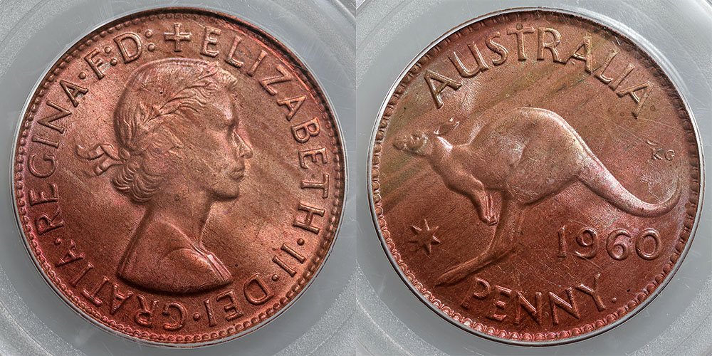 1960Y. PCGS graded MS 64 RB (16543889). Darkish mint red.