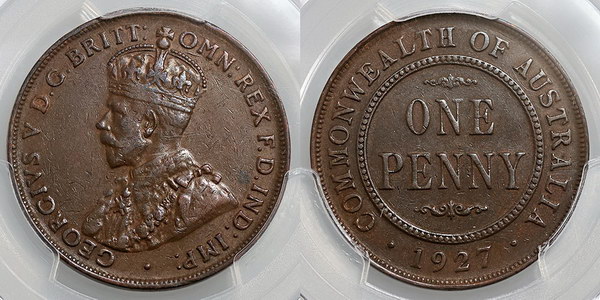 Penny. 1934. Dark red/brown with some uneven...