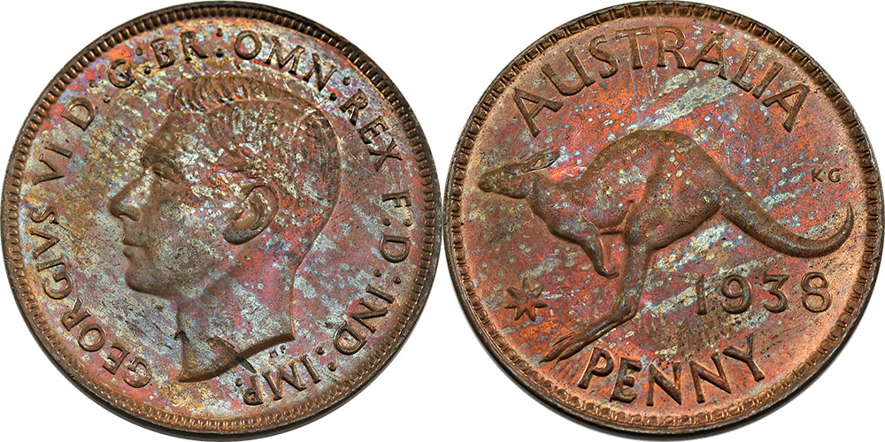 Penny. 1938. PCGS graded MS 63 RB (35241741)....