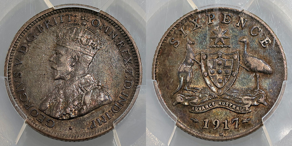 Sixpence. 1926. Seriffed 2. PCGS graded AU 53...