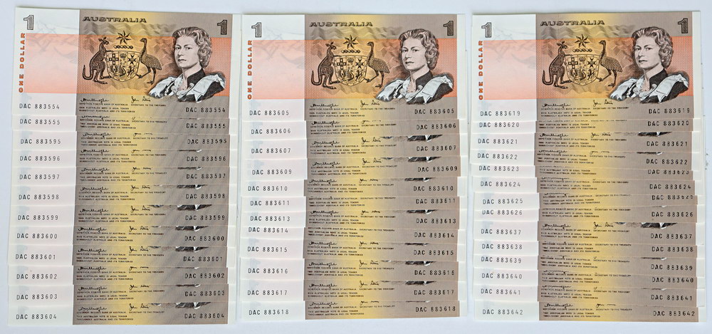 1979 Knight-Stone (R 77). Partial bundle of 38 notes, non-consecutive but made up of a pair, trio, run of 6, 13 and 14.