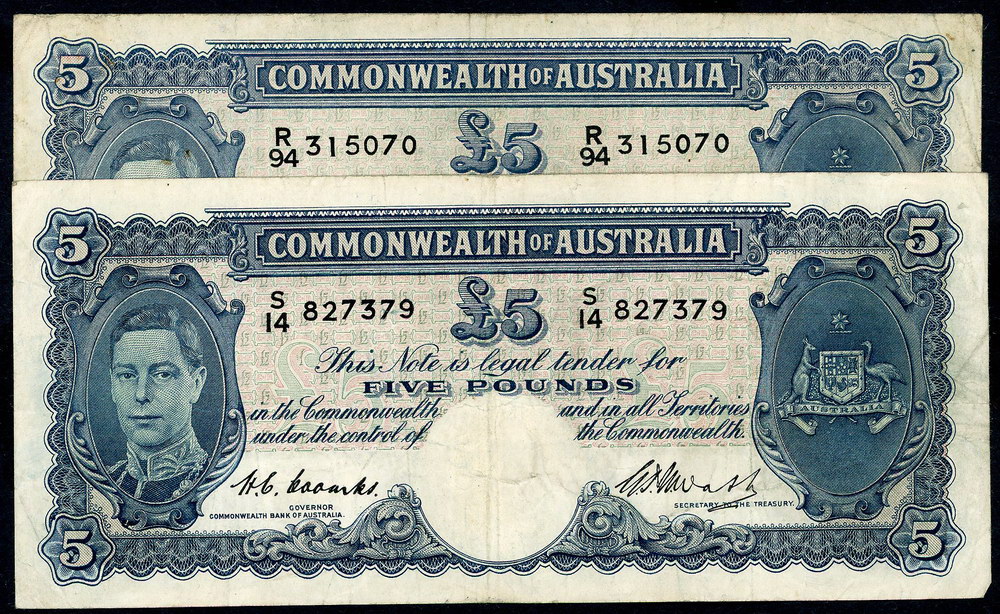 Five Pound. 1949 Coombs-Watt (R 47). Trace of a...