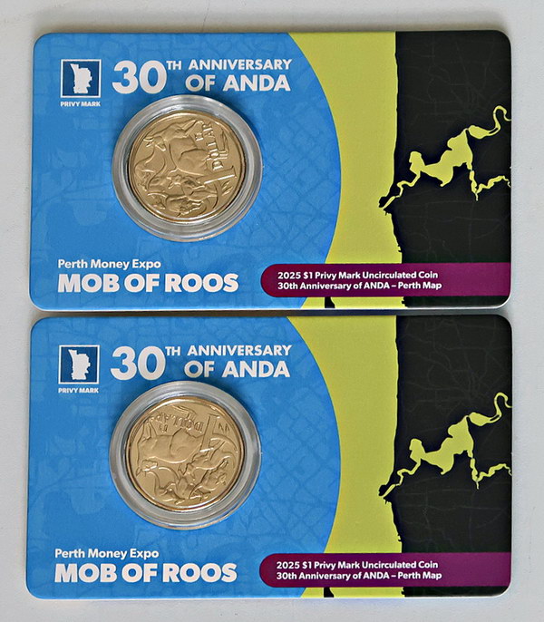 2025 ANDA Perth Money Expo MOR Perth map privy mark Dollar. In cards of issue. (2 items total).