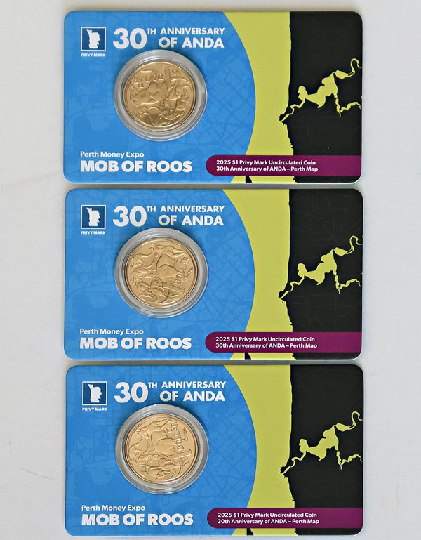 2025 ANDA Perth Money Expo MOR Perth map privy mark Dollar. In cards of issue. (3 items total).