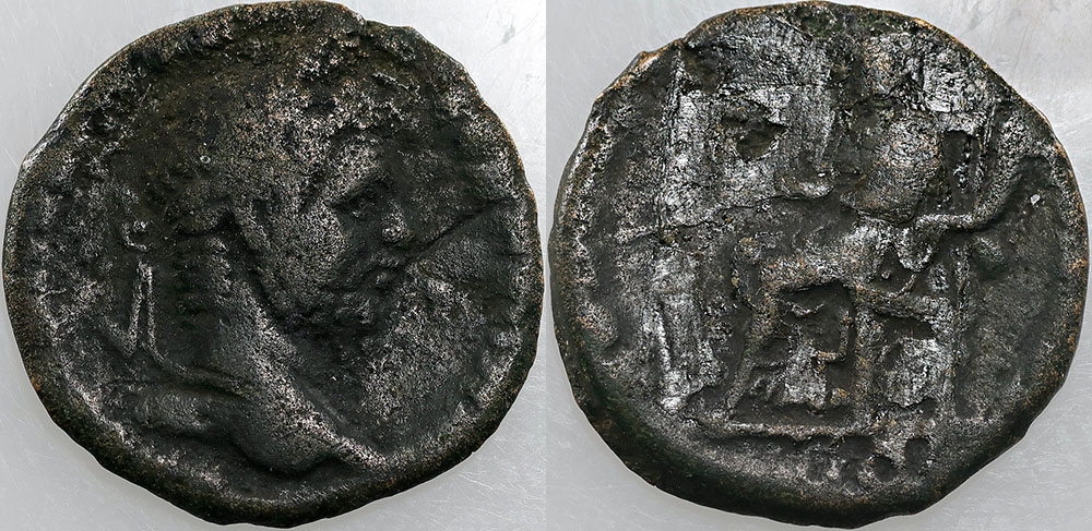 Ancient Rome Imperial bronze Caracalla (198-217AD), from Serdicain Thrace (24mm). Obv: Laureate bust of Caracalla right, Rev: Zeus standing left holding Nike. Scarce.