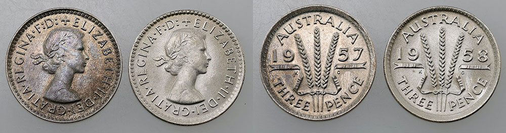Threepence. 1958. Light tone with bloom. (2...