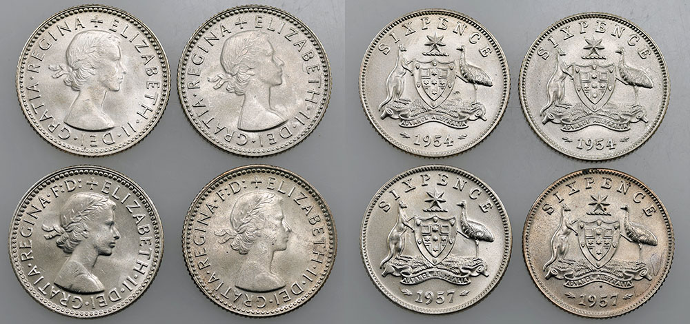 1954 (2), 1957 (2). Light tone with bloom. (4 coins total).