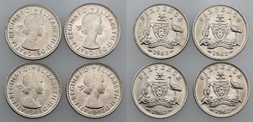 Sixpence. 1962. Light tone with bloom. (4 coins...