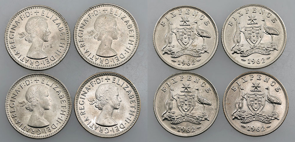 Sixpence. 1962. Light tone with bloom. (4 coins...