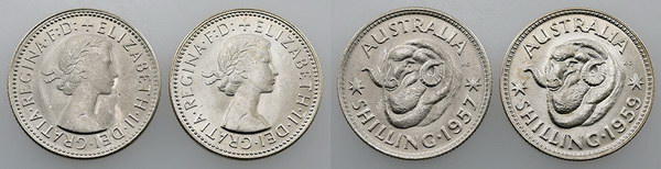 Shilling. 1959, 1960. Bright bloom. (2 coins...