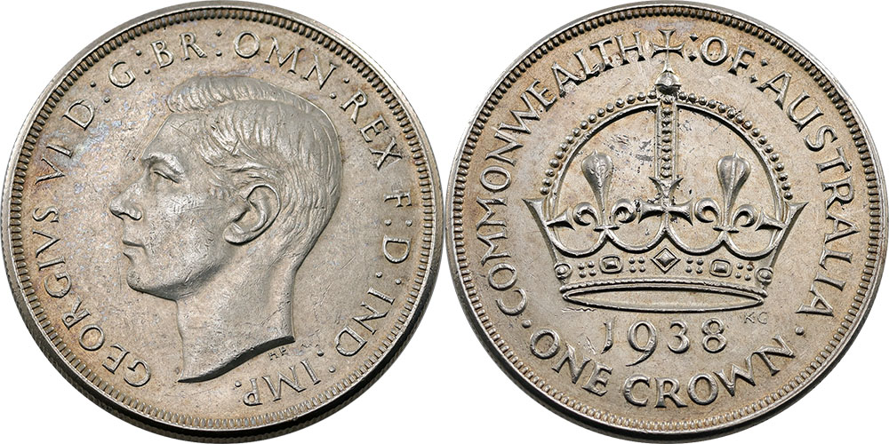 Crown. 1938. Light tone, cuts on Kings face.