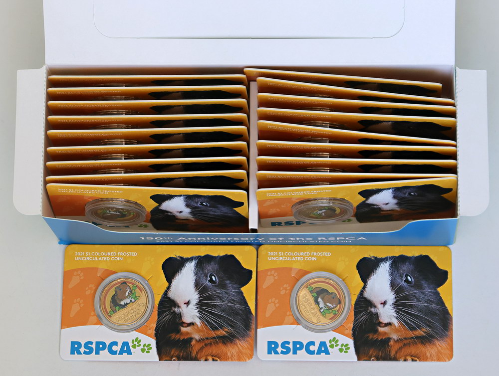 2021 RSPCA: Guinea Pig coloured Unc 1 Dollars on RAM cards. Retail for $15 each. Full display box of 20.