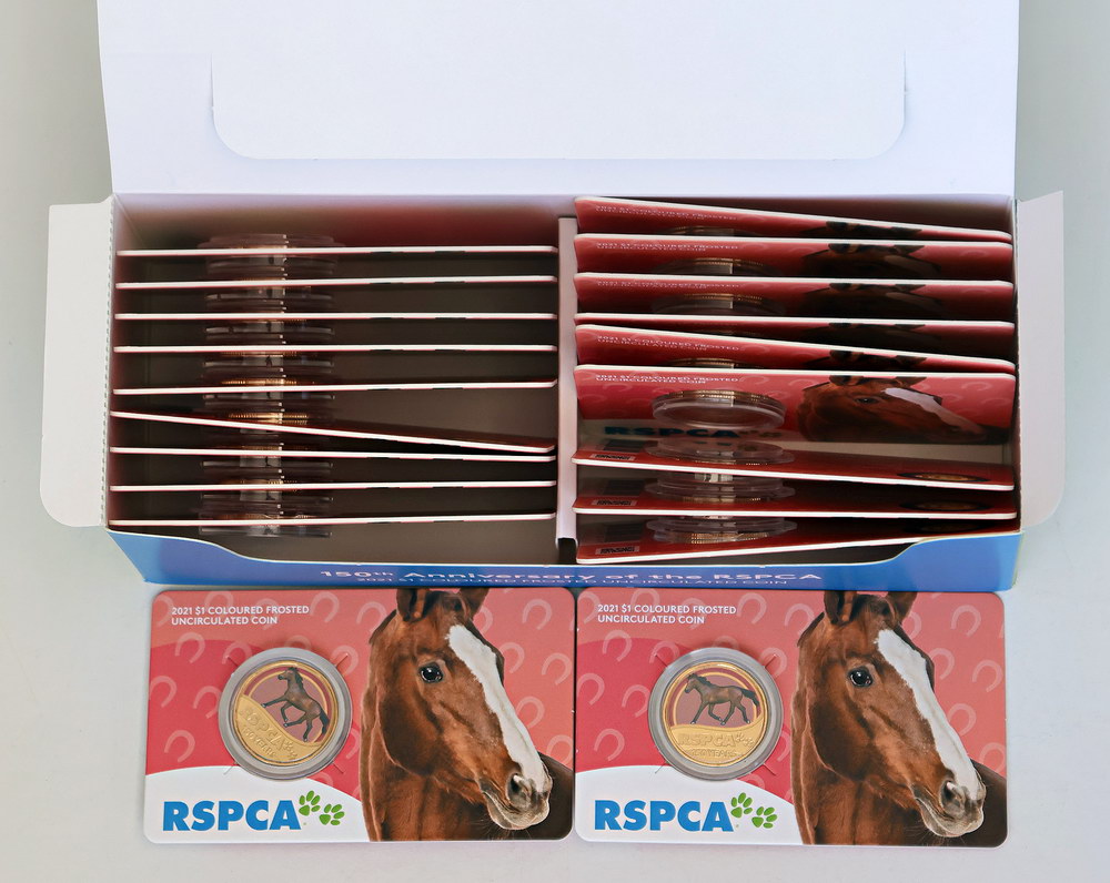 2021 RSPCA: Horse coloured Unc 1 Dollars on RAM cards. Retail for $15 each. Full display box of 20.