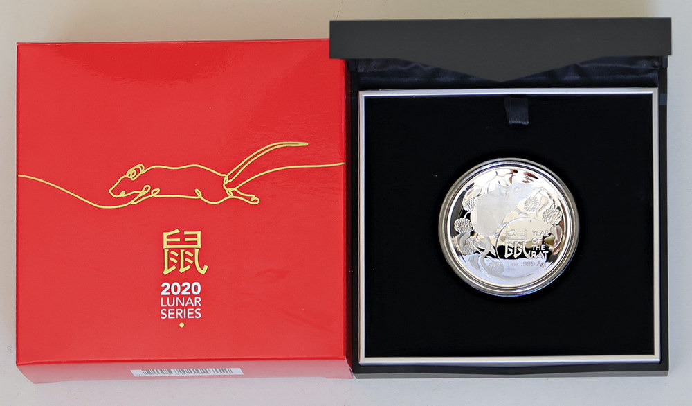 2020 Lunar: Rat $5 domed 1 oz silver Proof. In RAM box of issue with COA. Retails for $150.