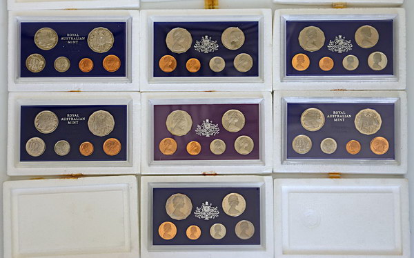 | Description: 1969, 1970, 1971, 1972, 1973, 1977, 1980 Proof sets. 1969 missing outer case and COA, otherwise all in packs of issue with clean foams and COAs. High catalogue value. (7 items total). FDC |