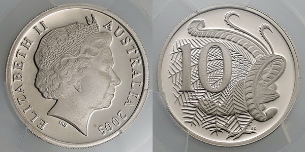 2005 Proof 10 Cent. PCGS graded PR 69 DCAM (43204434).