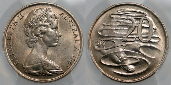 Twenty Cent. 1970. APCGS graded MS 66. Light...