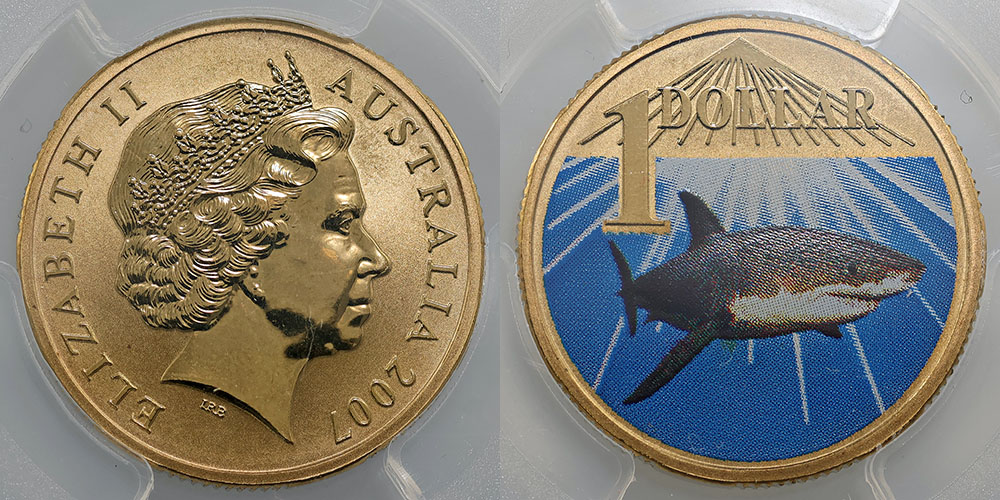 2007 Ocean Series: White Shark coloured. PCGS graded MS 67 (49984348).