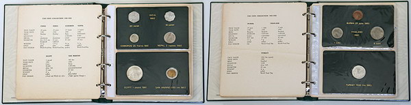 | Description: FAO World Money collection 1981-1983, set of 28 coins over 6 pages. Issued in conjunction with the United Nations and the Food and Agricultural Association and sold by subscription. Includes 5 in silver and a few Proof. In green album of issue, some coins toned. UNC-FDC |