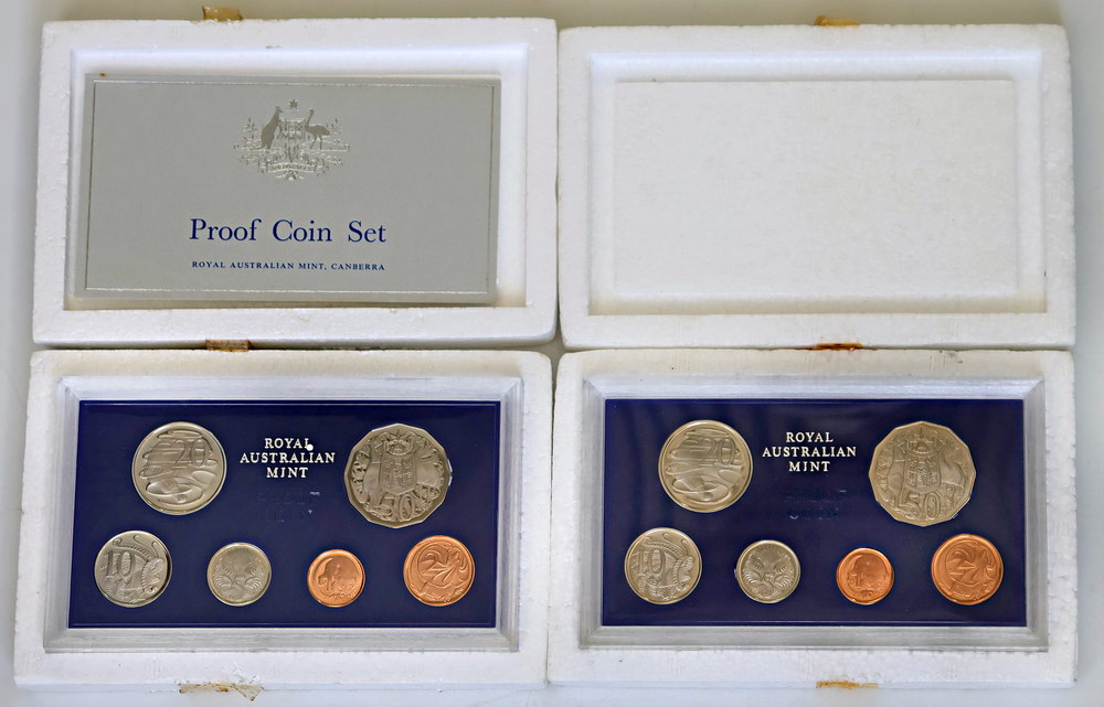 Proof Sets. 1972, 1973 Proof sets. With foams,...