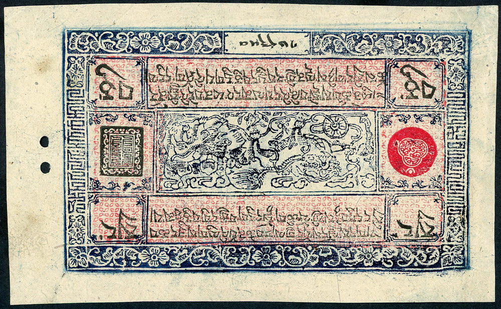 Tibet Government 10 Srang N/D (1941-48) (P 9). Two official spindle holes at right as issued. Scarce.