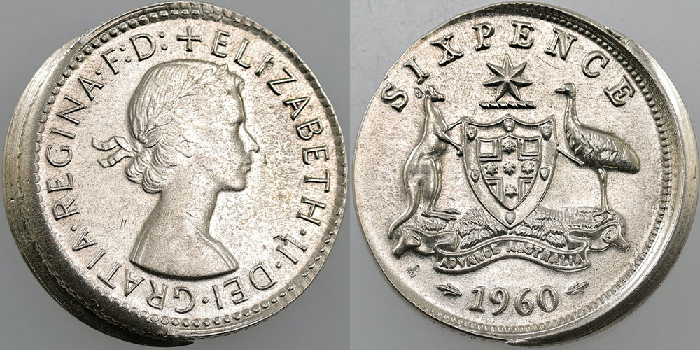 Sixpence. 1961. Struck approx 2mm off-centre...