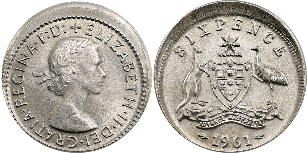 Sixpence. 1960. Struck approx 2mm off-centre...