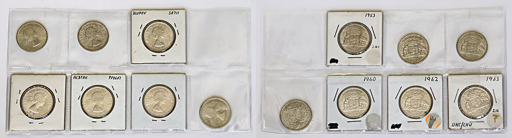 1953, 1954, 1959, 1960 (2), 1962, 1963. Light tone with bloom. (7 coins total).