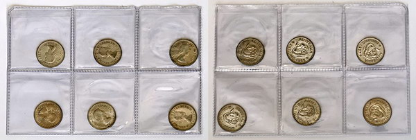 1954, 1955, 1957, 1958, 1959, 1960. Light tone. (6 coins total).
