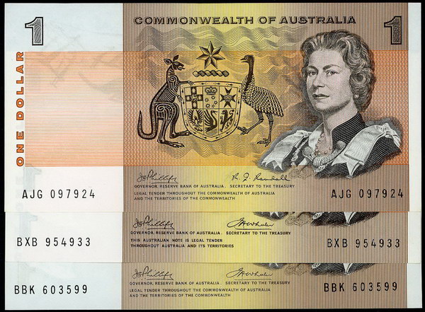 1969 Phillips-Randall (R 73), 1972 Phillips-Wheeler (R 74), 1974 (R 75). A little wavy. (3 notes total).