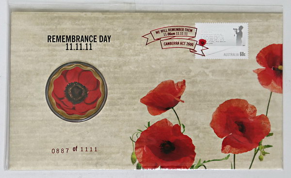 2011 Remembrance Day 11.11.11 coloured red poppy issue. Overprinted limited edition issue no 0887/1111. Scarce.