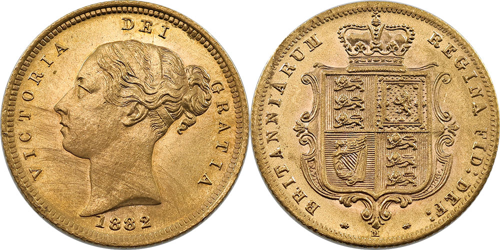 1882M Shield Reverse. Victoria Young head. Some light hairlines with some bloom.