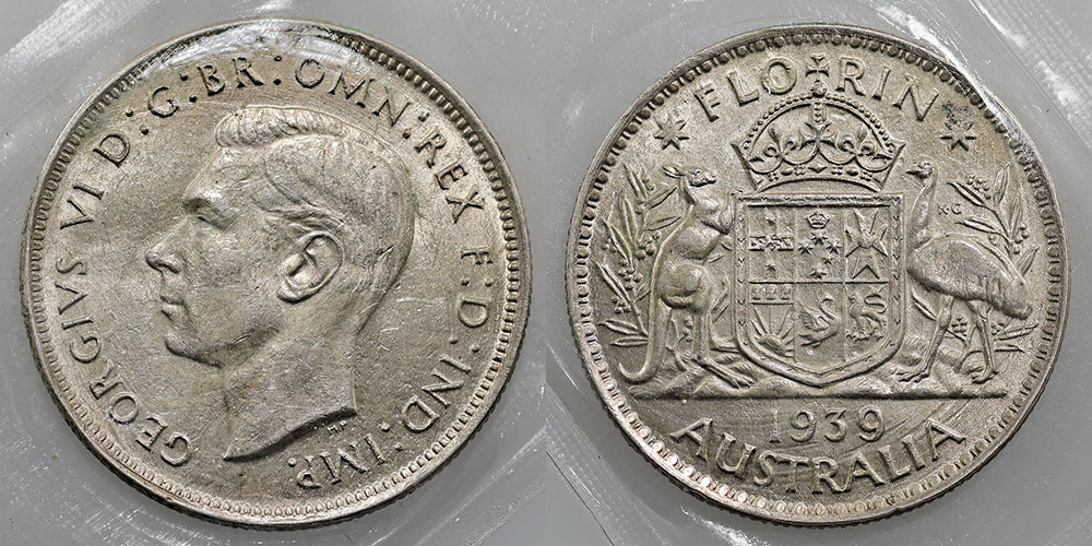 Florin. 1939. Key date. PCGS graded AU 58...