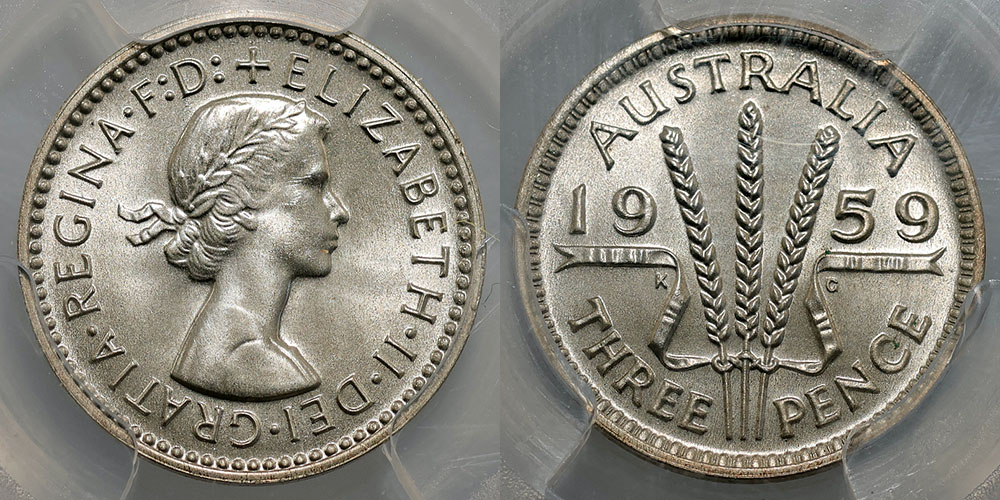 Threepence. 1959 Proof Threepence. PCGS graded...