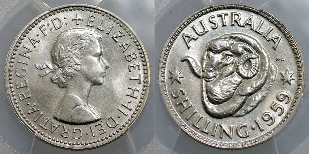 Shilling. 1959 Proof Shilling. PCGS graded PR...