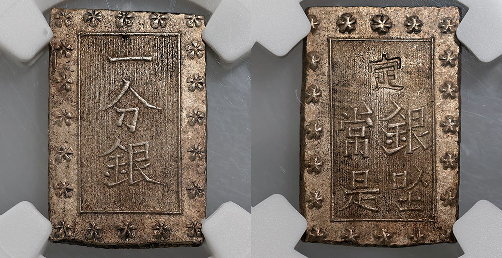 Japan Tempo silver 1 Bu N/D (1859-68). NGC graded MS 62 (6759673-029). Toned.