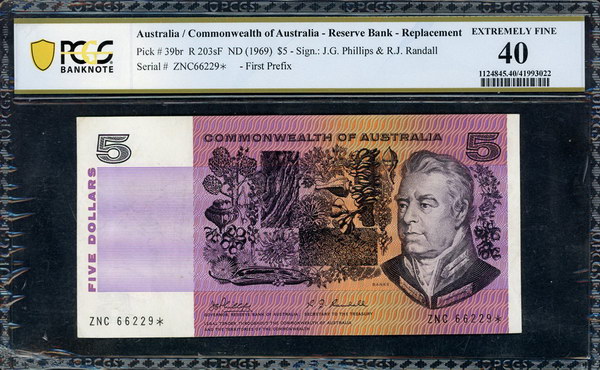 1969 Phillips-Randall ZNC (R 203sF). First star prefix. PCGS graded Extremely Fine 40 (41993022). Pop 2 with only 3 higher. Rare.