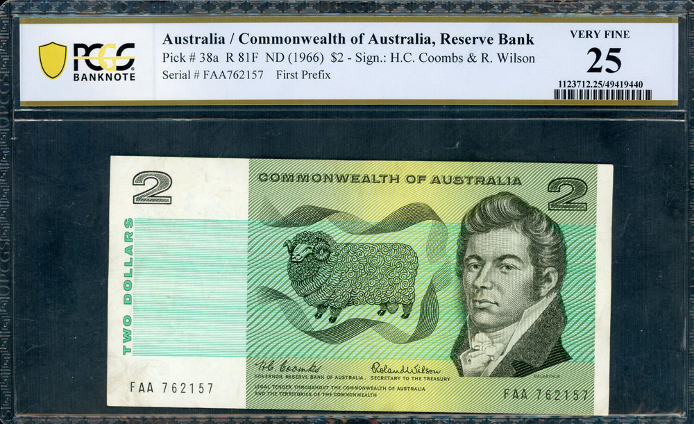 1966 Coombs-Wilson FAA (R 81F). First 2 Dollar prefix. PCGS graded Very Fine 25 (49419440).