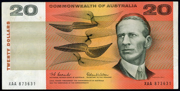 1966 Coombs-Wilson XAA (R 401F). First 20 Dollar prefix. Folds.
