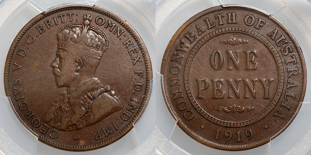 1919 Double Dot. PCGS graded VF 25 (59808577). Brown, four pearls, nice clear dots.