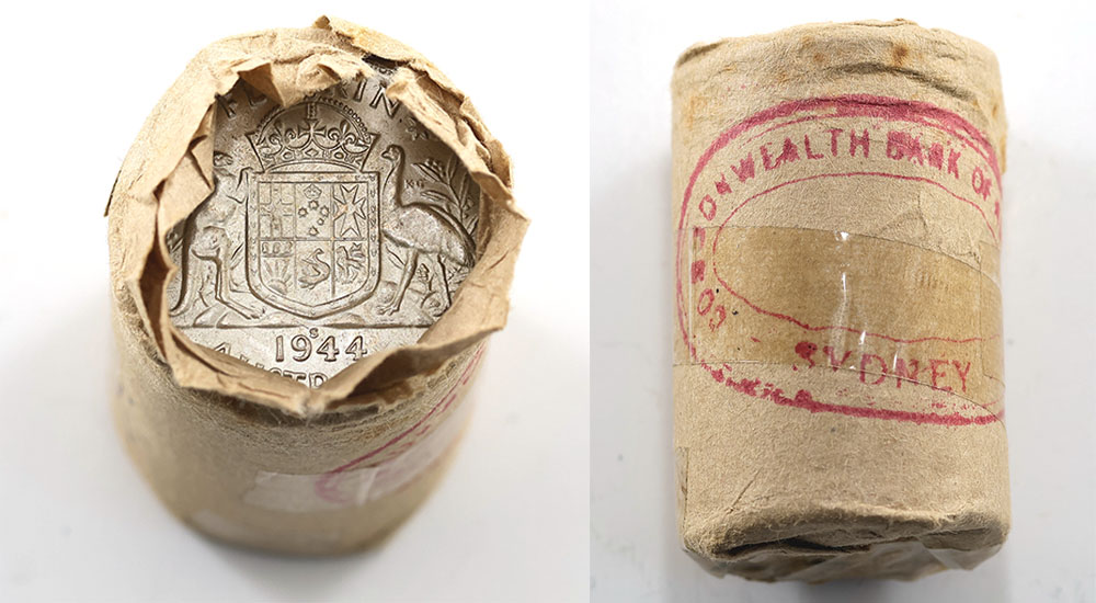 Florin. 1944S. Commonwealth Bank roll. End...