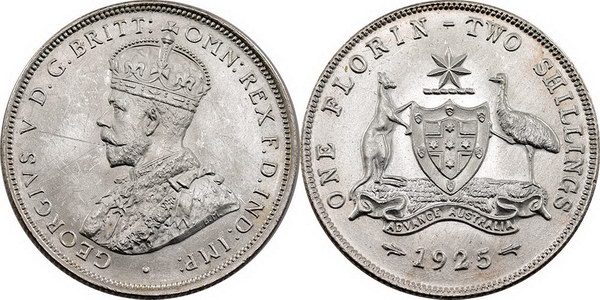Florin. 1925. Brilliant mint bloom with light...