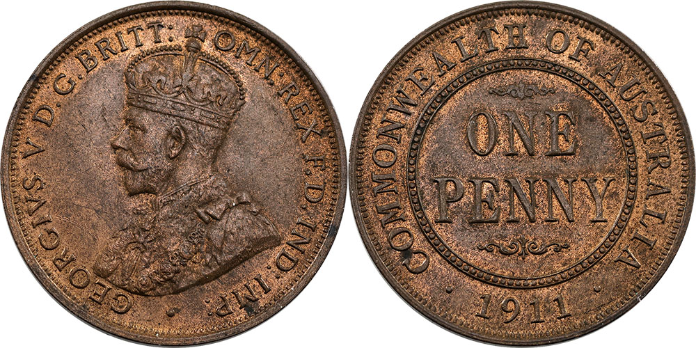 Penny. 1911. Almost full mint red.