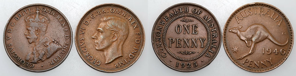 Penny. 1925, 1946. Key dates. (2 coins total).