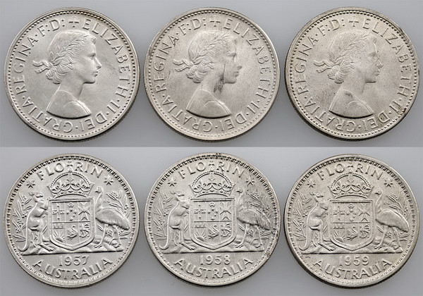 Florin. 1954 Royal Visit (2), 1956, 1959 Egg...