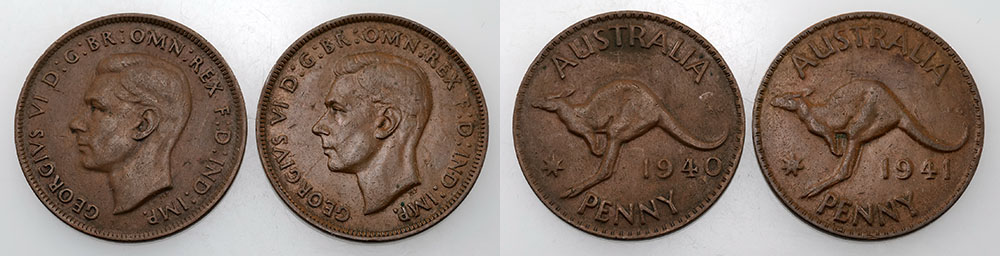 Penny. 1940 K.G, 1941 K.G. (2 coins total).