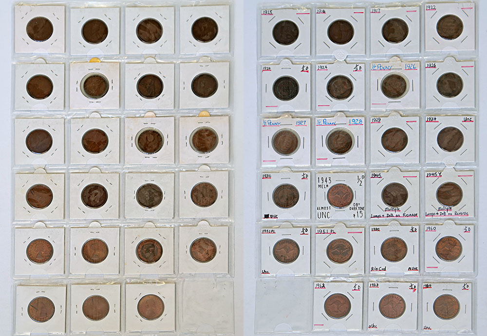 | Lot: 585 Category: Bulk/Miscellaneous Australian Coins > Halfpenny |